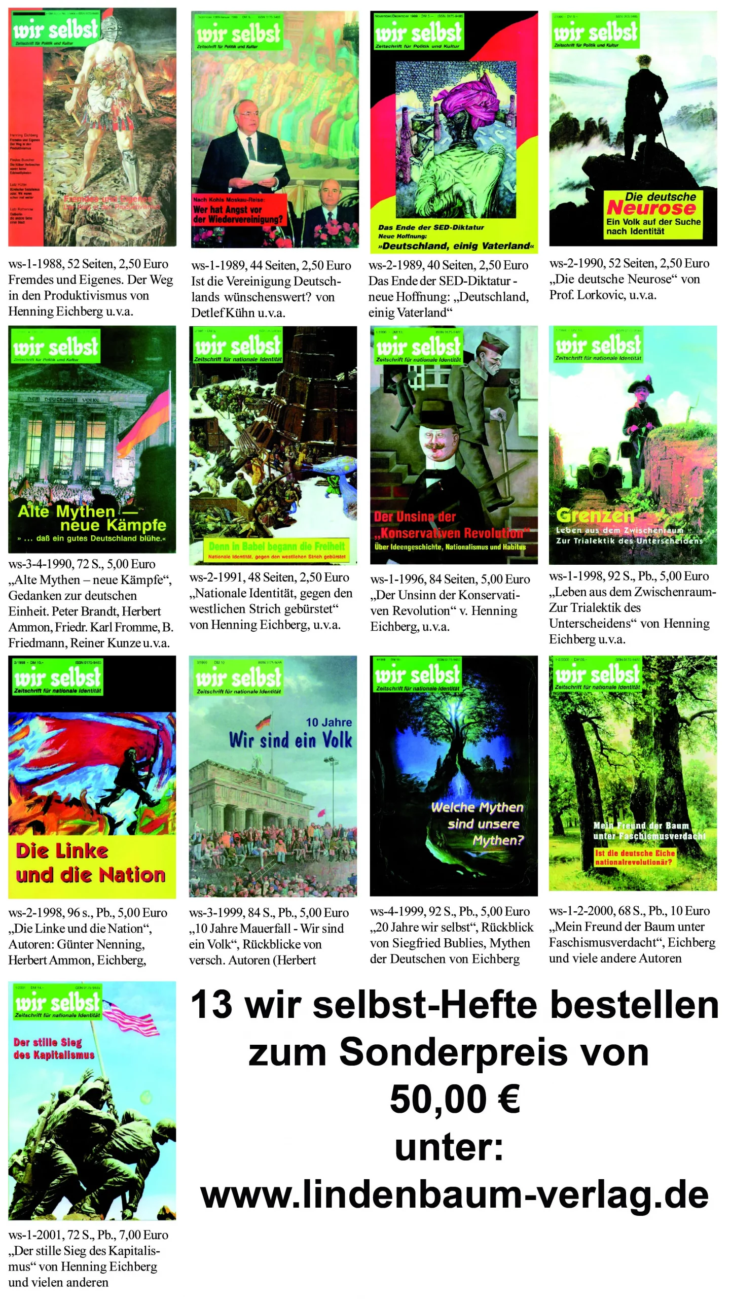 Es erscheint etwas waghalsig, wenn genau 20 Jahre nach dem letzten Erscheinen der gedruckten Ausgabe unserer Zeitschrift wir selbst von uns nun ein neuer Versuch unternommen wird, mit einer Druckausgabe einige Anregungen zu den wichtigen Fragen der deutschen Politik zu geben. Vor etwa 3 Jahren hatten wir uns bereits mit einer eigenen kostenlosen Internet-Ausgabe (www.wir-selbst.com) zurückgemeldet und mit hervorragenden Autoren – einige aus der älteren „wir selbst“-Mannschaft und auch neu zu uns gestoßenen jüngeren – Denkanstöße mit überwiegend guten Resonanzen geben können. Auch eine kleine treue Lesergemeinde hält uns seither die Treue. Das ermutigt uns nun zu dem weiteren Schritt, in unregelmäßigen Abständen die Zeitschrift auch in gedruckter Form erscheinen zu lassen.